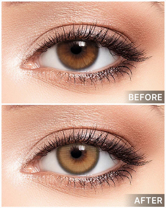 Subtle beige-brown gradient with a gentle limbal rim. The “mini” 13.2 mm graphic inside a 14.0 mm DIA gives clean definition and a natural, everyday enlargement.