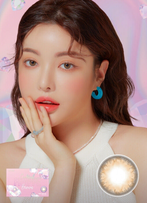 Cool “ice-crystal” motif with a soft brown tone-up; the 13.5 mm graphic adds neat sparkle while staying wearable for everyday looks.