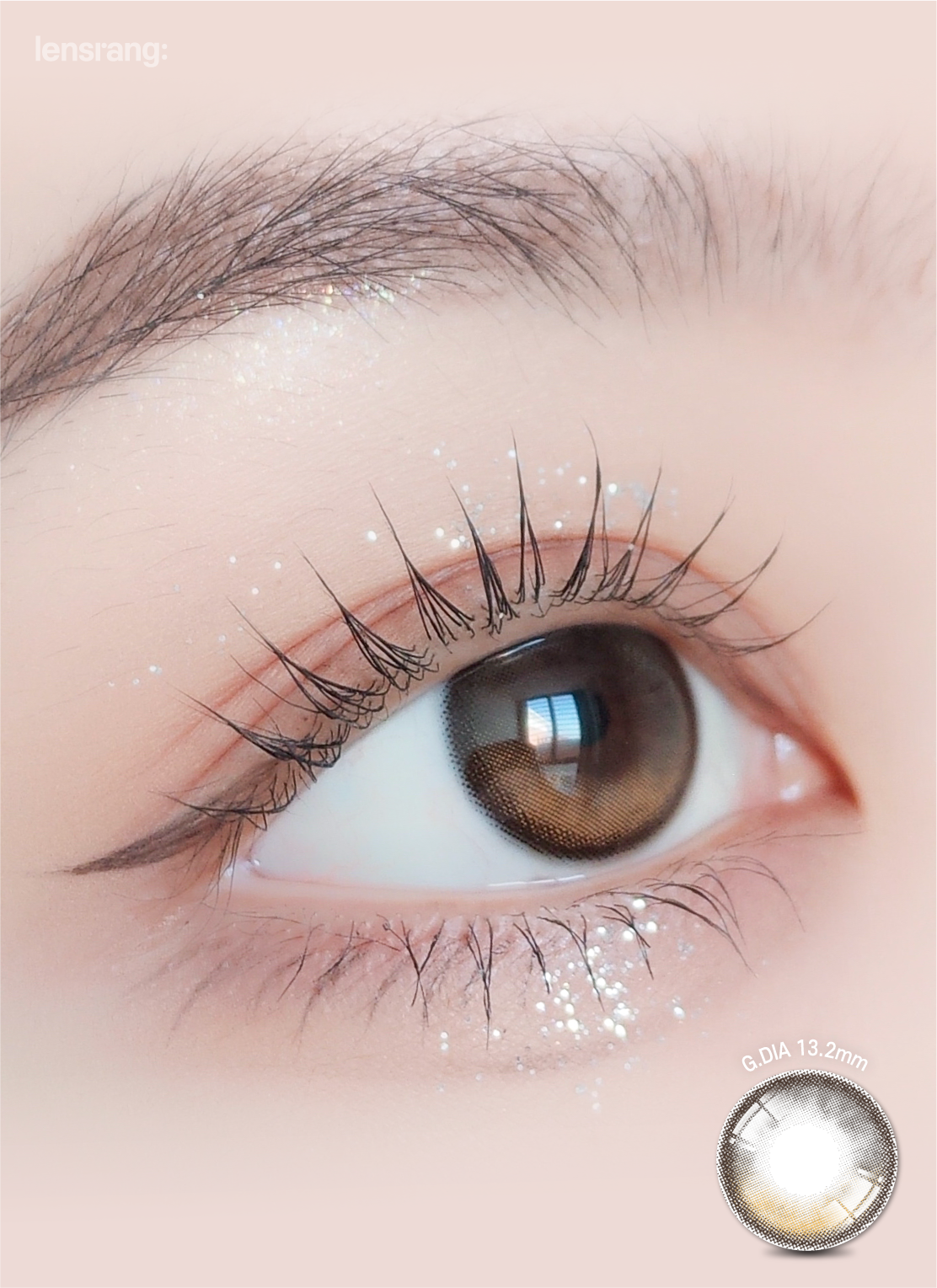 Smoky-brown ring with a warm inner glow creates soft definition and dimensional brightness. The 13.2 mm graphic enlarges naturally for everyday wear.