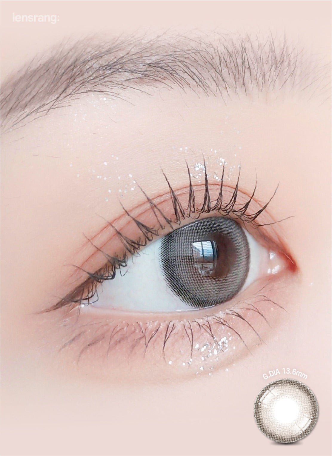 Lensrang Sugar Cream Ash Gray wraps your iris in a milky ash-gray gradient on a 13.6 mm graphic diameter. The fine dotted rim and semi-sheer pattern blend smoothly with your natural eye colour, giving a clean, luminous gray effect and subtle enlargement that stays soft from every angle.