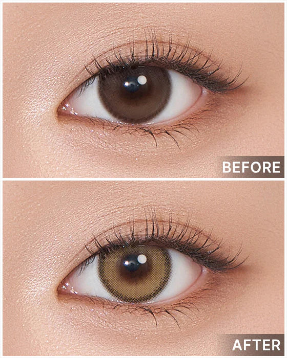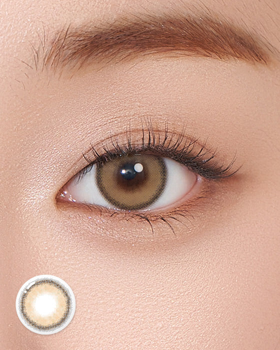 Beige-rose gradient with a soft dotted ring and luminous center. The 13.4 mm graphic brightens and enlarges naturally while the pixel pattern melts into your iris for a refined, everyday glow.