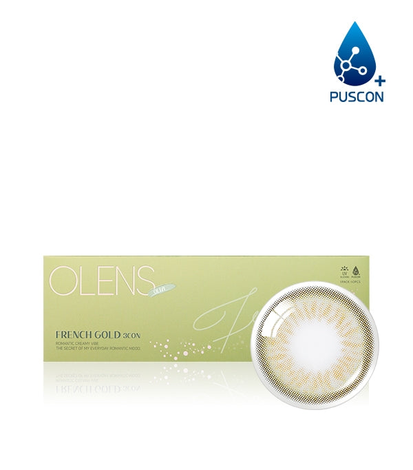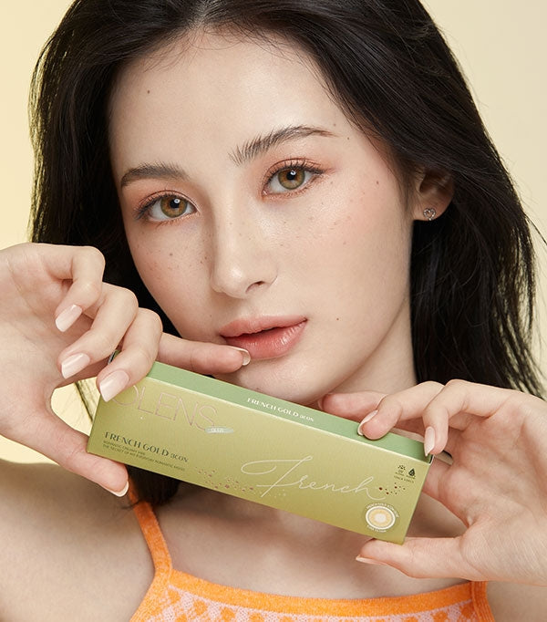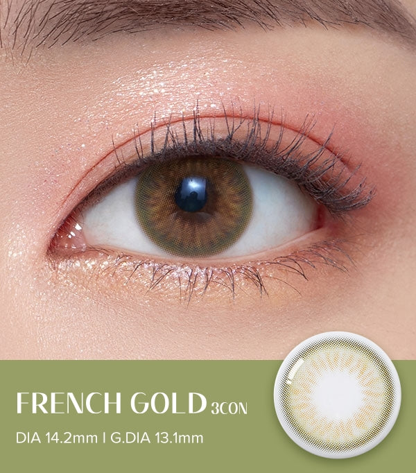OLENS 1 Day French Gold 3con Olive 日拋隱眼,展現自然低調的美感。採用 Puscon 材質並含 48% 含水量,全天配戴依然透氣又舒適。13.1mm 著色直徑搭配 14.2mm 鏡片直徑,帶來柔和自然的放大效果,比例剛剛好不誇張。獨特的奶油色邊框設計,讓雙眼輪廓清晰卻依然柔和;溫暖的橄欖金色調,增添一抹亮眼光采,真實又帶點閃耀感。日拋設計結合舒適與優雅,日常配戴超百搭。