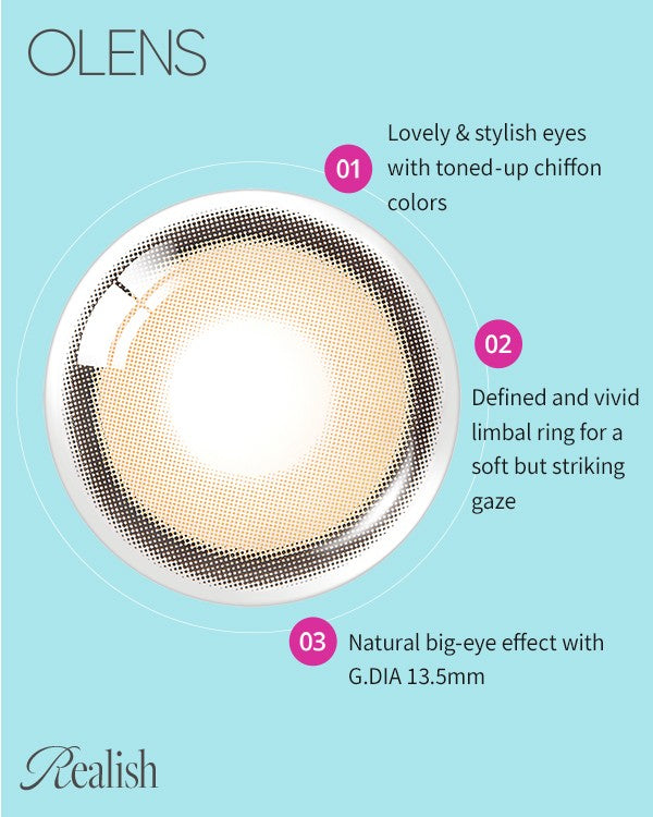 Soft, toned-up chiffon brown paired with a vivid limbal ring creates a striking yet gentle definition. The 13.5 mm graphic adds balanced enlargement for a polished gaze.