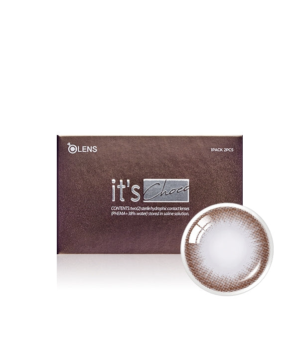 OLENS NEW It’s Choco lenses feature a meticulously crafted chocolate-gradient pattern that merges deep outer and creamy inner tones to replicate the depth and warmth of a natural iris. With a 14.0 mm total diameter and 12.9 mm graphic diameter, they subtly enlarge without resorting to a stark limbal ring, preserving authenticity in wear. Constructed from breathable HEMA polymer (38 % water content) on an 8.6 mm base curve, these monthly disposables ensure both hydration and a secure, stable fit delivering comfort and style for up to 30 days per box.